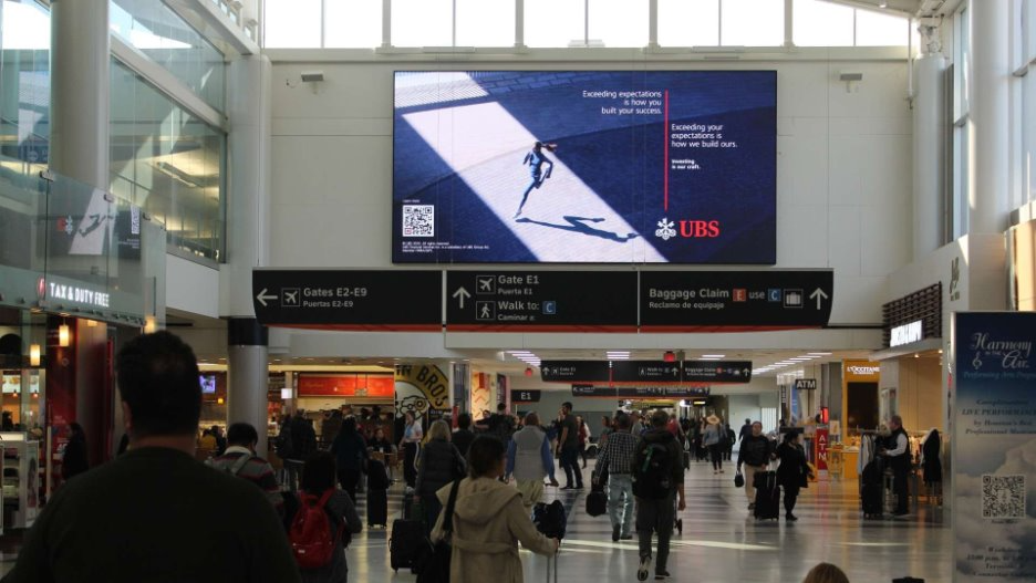 Across airport-wide Prestige screens, large-format Digital Spectaculars, and gate hold areas throughout IAH.