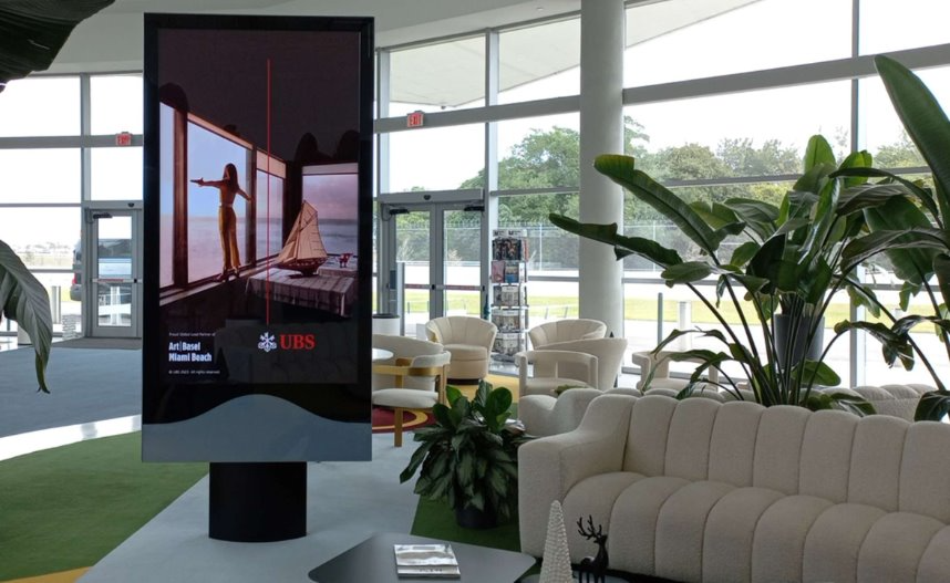 The media environment is calm, uncluttered, and intentional. Screens are placed in lounges, waiting areas, and check-in spaces where passengers spend time before departure.