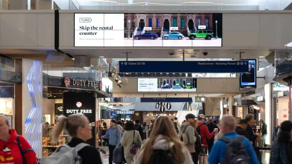 Gate hold areas provide extended dwell time. Passengers are seated, waiting, and often focused on nearby screens. This creates a strong opportunity for repeated brand exposure before departure.
